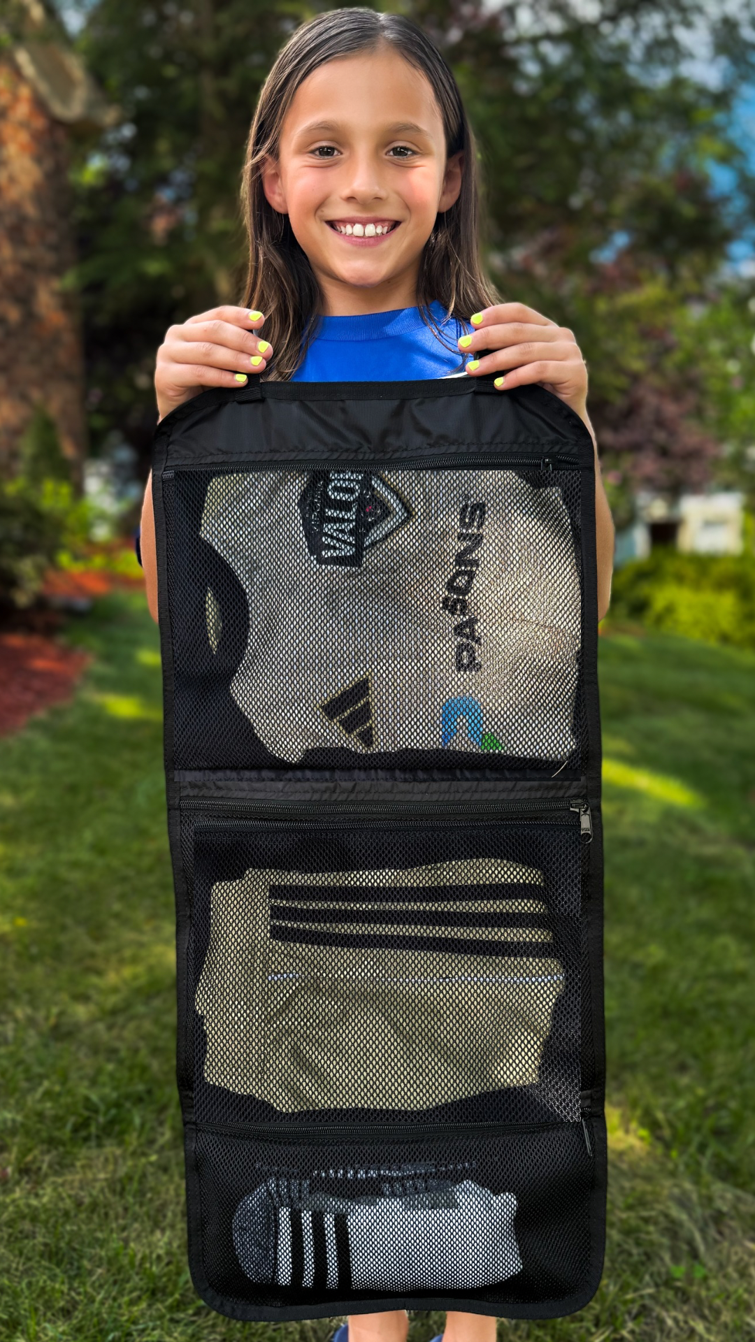 Keep your all game day jerseys, shorts, sock and shin guards neatly organized and travel-ready with our Valor x Pitch Pack uniform organizer.